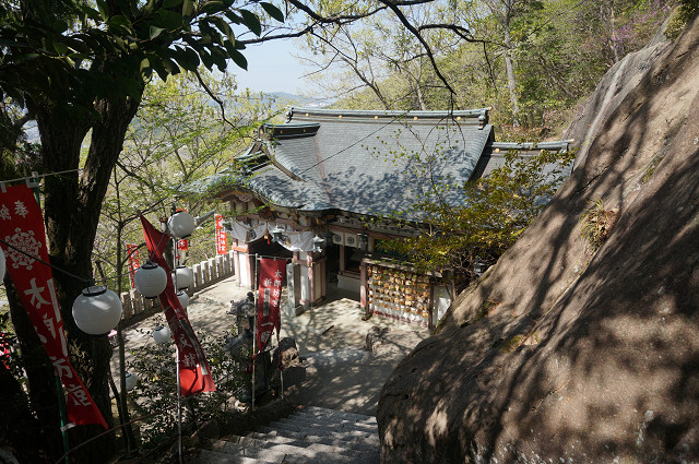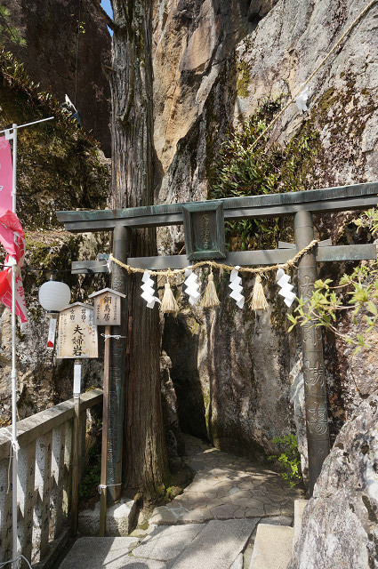 山腹にはいよいよお目当ての「夫婦岩」がある その岩の割れ目の奥に本殿がある