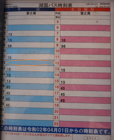 予定より1時間早かったので1時間に一本に出るバスだが1時間早いバスに乗れると思ったが