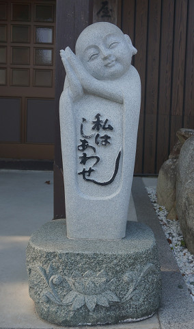 バス停の近くのお寺の門前にお地蔵さまがおられた
