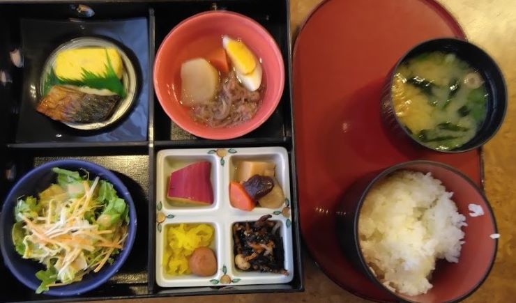 食事は一人客はダイニングの一角を仕切って個室様 隣は金髪白人の50歳くらいの女性