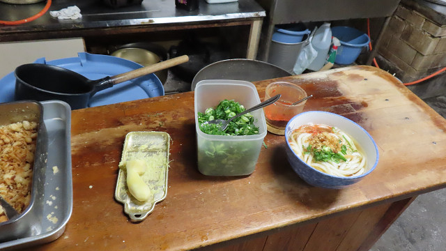 ここは半セルフ トッピングだけセルフ 素うどん(かけ)360円