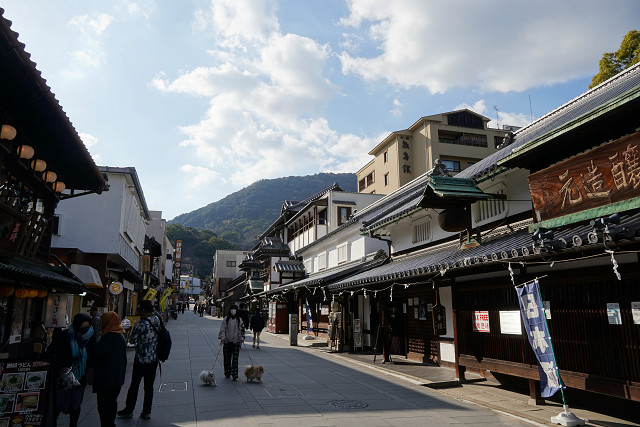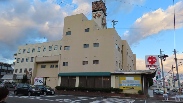 駅から真っすぐの山際の善通寺まで徒歩18分 宿は「善通寺グランドホテル」