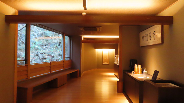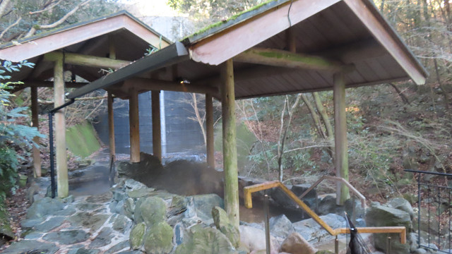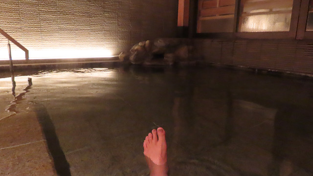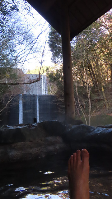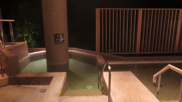 夜は男性風呂から「滝」は見えない 明日の朝は男女入れ替えで「滝」が見えるらしい 楽しみ