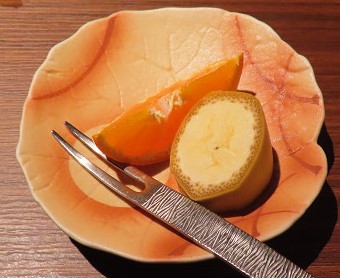 デザートがやけに遅いなと思っていたら 竹皮に包まれたおにぎりも一緒だった 又 涙・・・