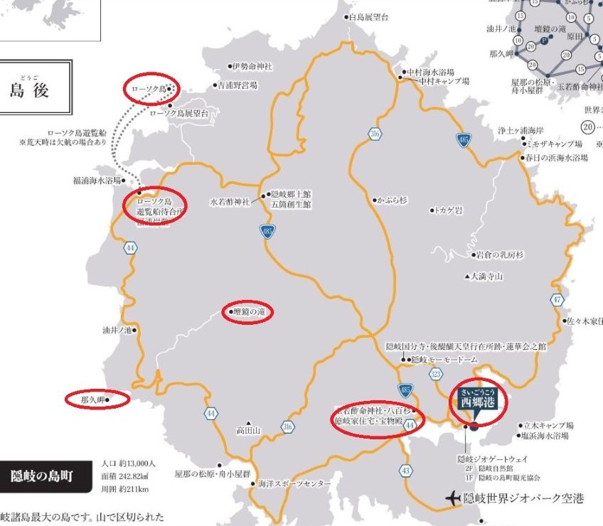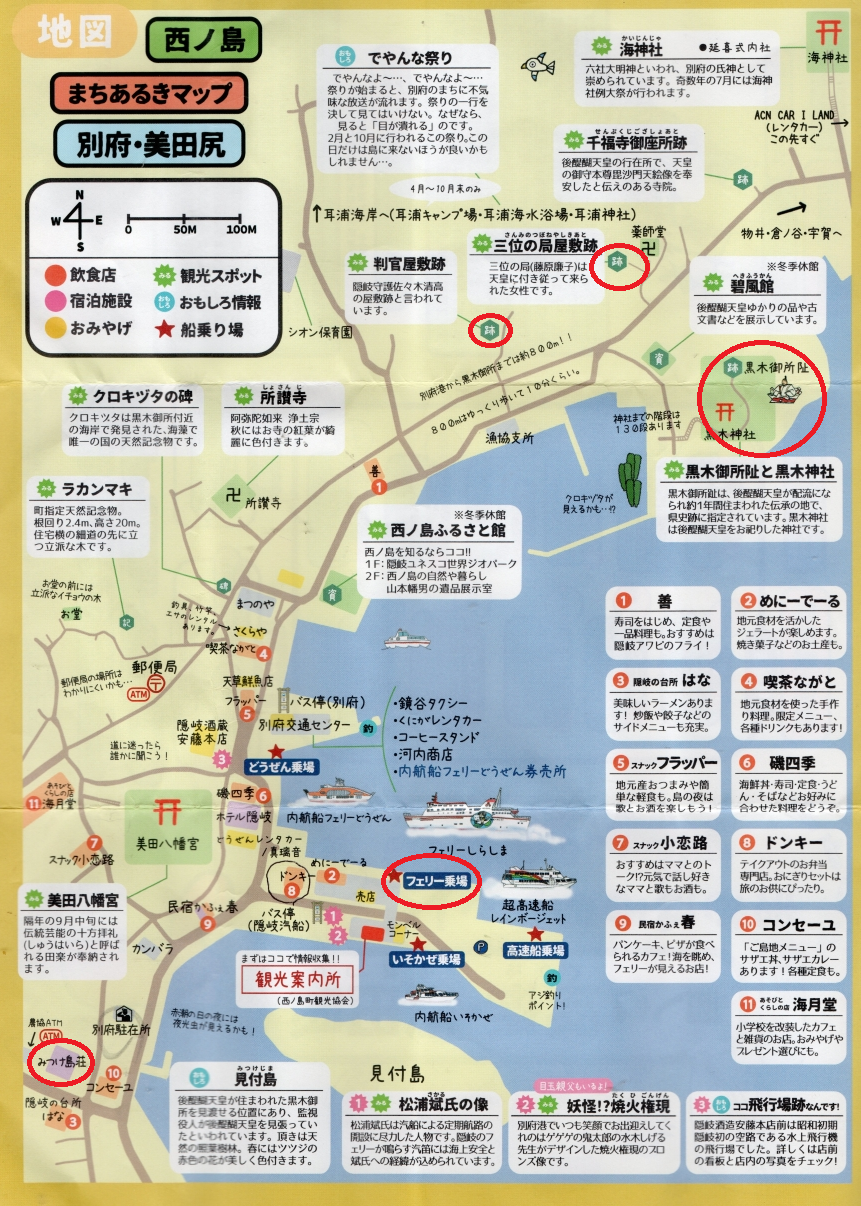 島前には➀西ノ島(別府港)②中之島(菱浦港)③知夫里島(来居港)