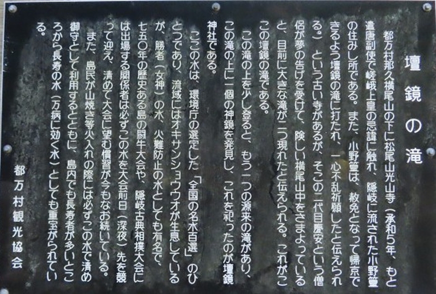 それと中の島の後鳥羽上皇の火葬場は入っているが 壇鏡の滝は無い
