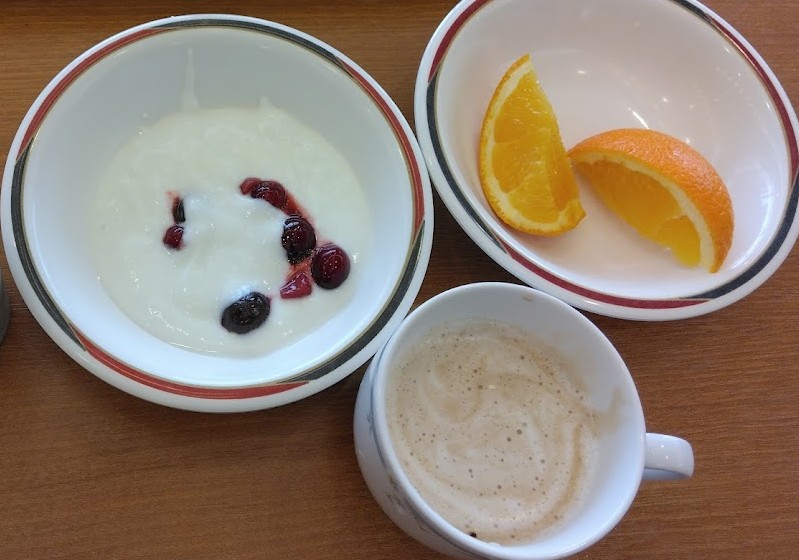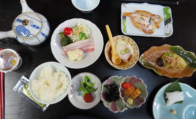 朝食を食べ フェリーに向かう