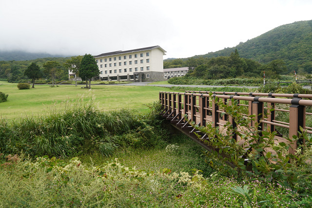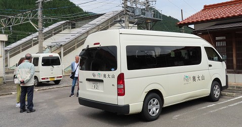 今夜から2泊する「国民休暇村奥大山」の迎えの車と「根雨駅」