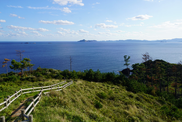 きょうは岬から本土・大山が薄っすら見えていた