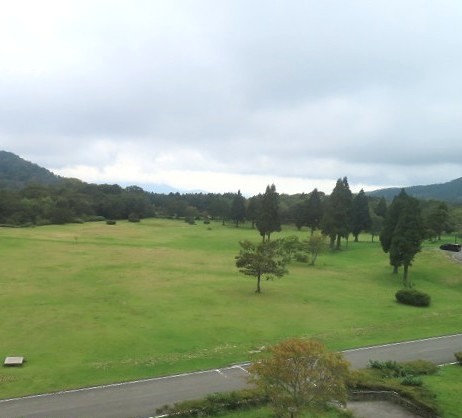 部屋からの景色 多分 前の芝生が「星空鑑賞会」の場所なんだろうが・・・