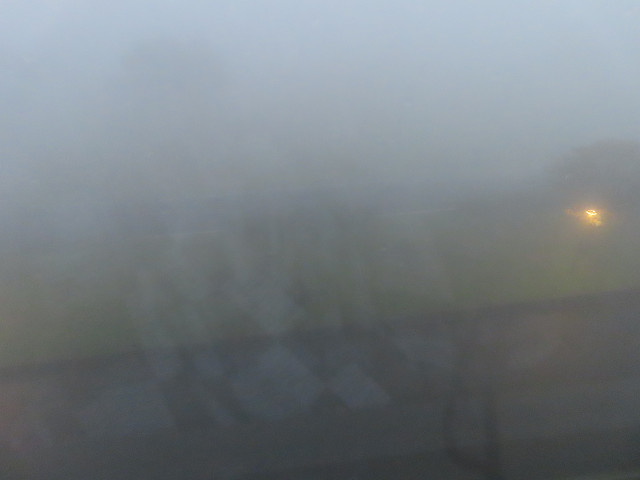 朝も霧で窓の外は真っ白