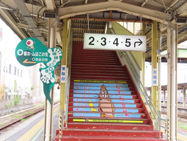 米子駅の1番線ホームは前半分が0番線で後ろ半分が1番線である