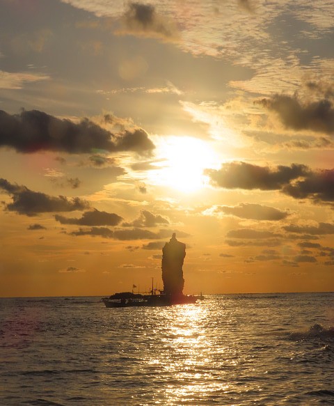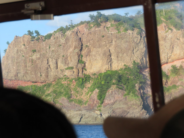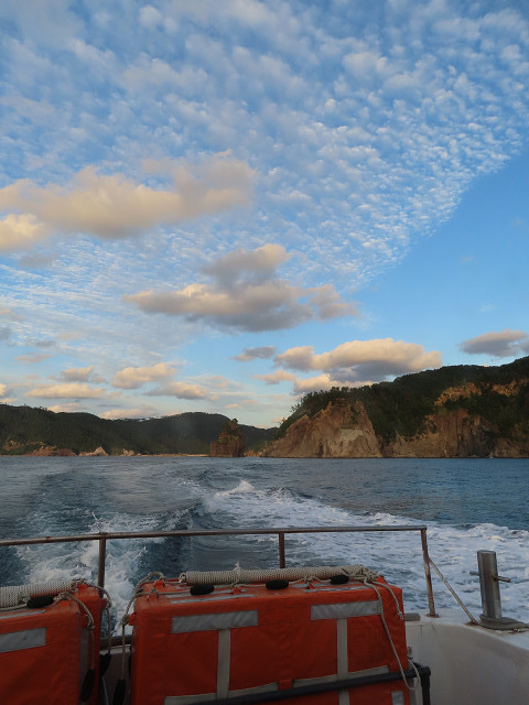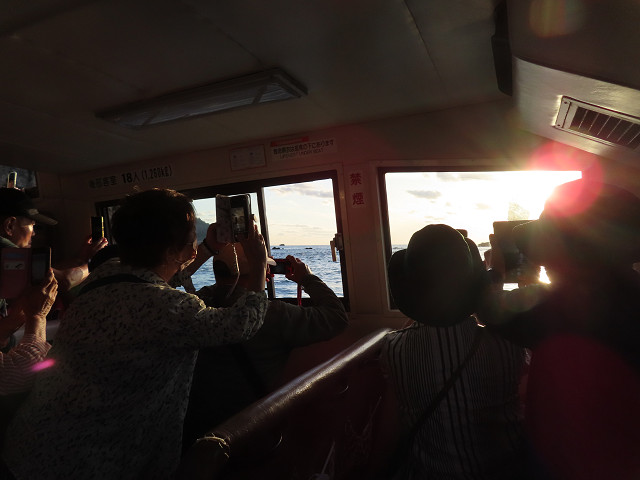 船は崖とローソク島の間に入らないと夕日に向かえない