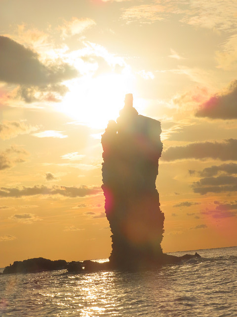 や積丹半島の突端 神威岩(温泉25その2)などがあるが夕日のほどはわからない