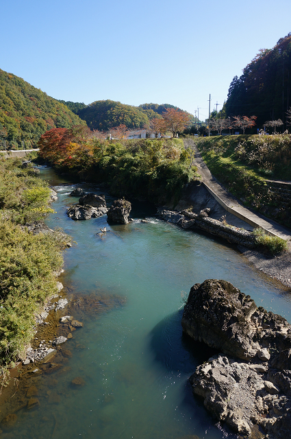 ダムに上がる近くの川筋の途中の道で下ろしてもらった(一応300円は払う)