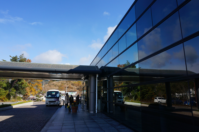 駅前広場には温泉旅館の送迎車が数台泊止まっている