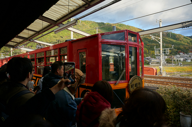 嵯峨嵐山駅で観光客がどっと降りたのでガランとなった。