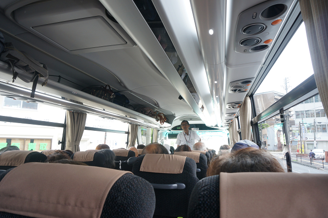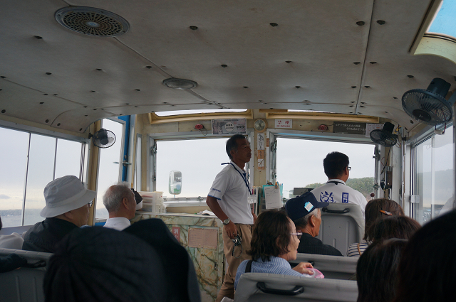 ボランティアのおばさんはバスに乗り込んでこれから行く見附島までの案内をしてくれる
