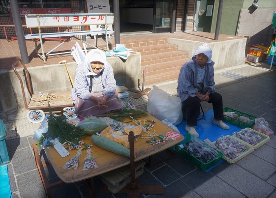 雪滑りの良い「能登瓦」一色の村々を通り8景の④輪島の朝市に向かう