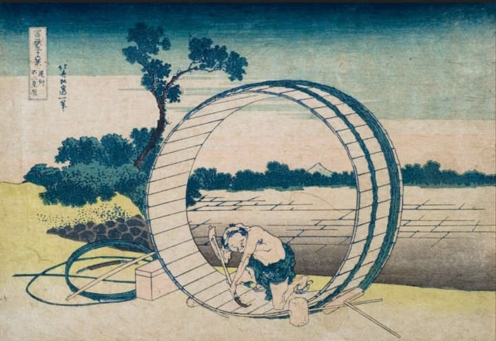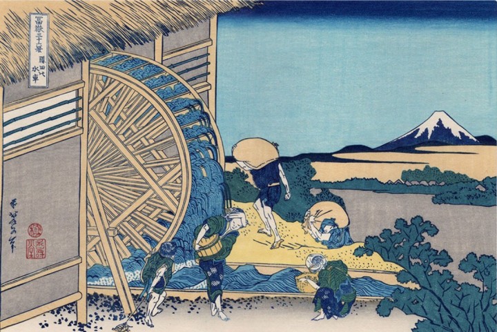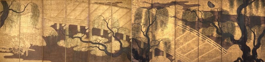 『柳橋水車図屏風』