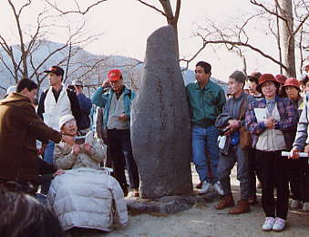 「東京・霞ヶ関の弁護士会館の片隅で「万葉集を読もう会」を始めて20年になった。毎月一回の例会には30人近い人たちが集まって話しに花が咲く。会員は弁護士、調停委員、会社員、団体役員、教師、歌人、料理研究家、主婦など多彩である。日本相撲協会前理事長(元横綱佐田の山)の境川尚氏夫妻も時々ふらりと見える。みんなしなやかな心の持ち主である。・・・・」とある。思えば、10数年前、故犬養孝先生(阪大名誉教授)の主催される「万葉の会」に参加して、考古学の会と合わせて文字通り山野を駆け巡っていた。考古学は実証の科学である、そこには人間の臭みが直接見えて来ない。臭みに出会いたく、万葉に接した。月一回の探訪は普段は犬養先生のお弟子さんで武庫川女子大教授の清原先生などが案内されるのだが、足のご不自由だった犬養先生が年一回だけ来られるコースがあった。阿騎野(奈良県宇陀郡松山町付近)である。