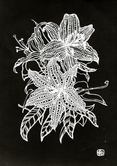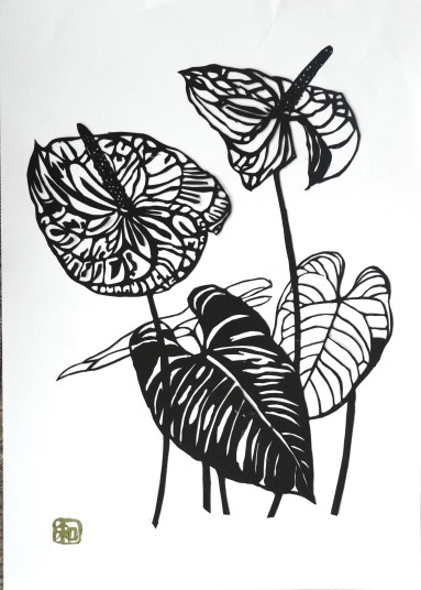 亡姉の趣味ボタニカルアートの遺作を切り絵にしてみました