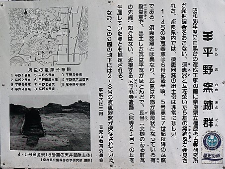 香芝市平野の丘陵に所在する窯跡群で三郷町の勢能・辻ノ垣内窯跡と並んで奈良盆地では