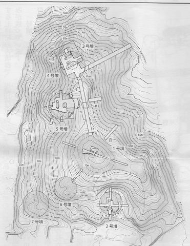 最も古い3号墳は墳丘の一番北に有り上の「画文帯神獣鏡」が出土