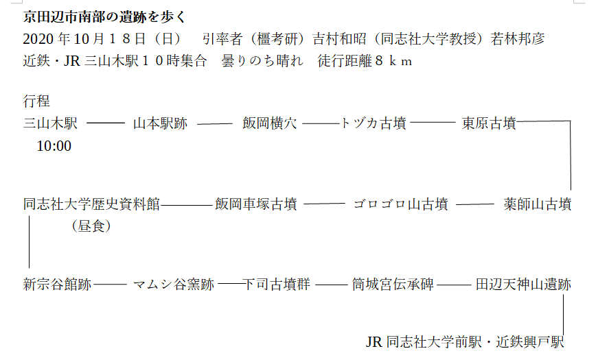 今日は橿原孝研の吉村先生と途中から同志社大学教授の若林邦彦先生のご案内もあるというので楽しみである