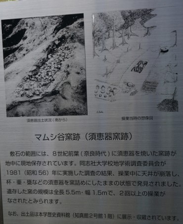普賢谷に面した丘陵南斜面に造られた須恵器醸成の為の半地下式窯跡です。最大幅は1.55m最長は2.6m床面2面が確認されます。