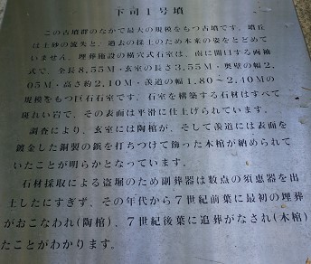 墳丘には埴輪・葺石がみられ竪穴式石室 長さ23m弱幅0.7m 高さ0.9m 明治7年の調査で銅鏡3面