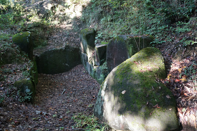 支脈にある都谷居館跡などで、それぞれに郭、土塁、壕跡などが残されています。これらは都谷中声居館跡と総称されています。