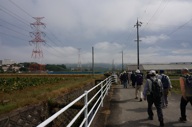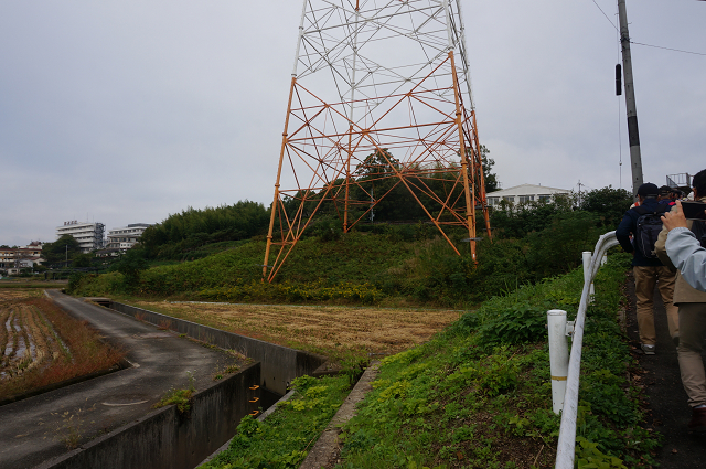 上写真左端の鉄塔の向こうの小高い丘が飯岡丘陵