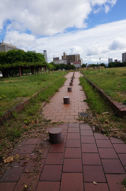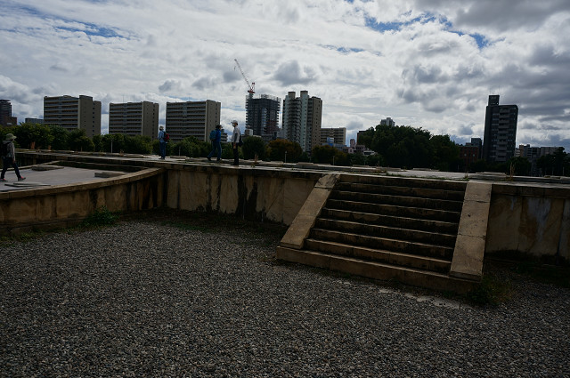 前期の基壇は地中に埋められたままで上の塔は平和祈念塔らしい