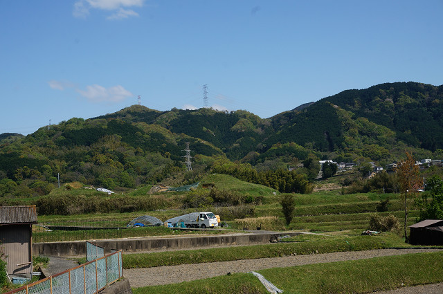 「二子塚古墳から見た山田高塚古墳」