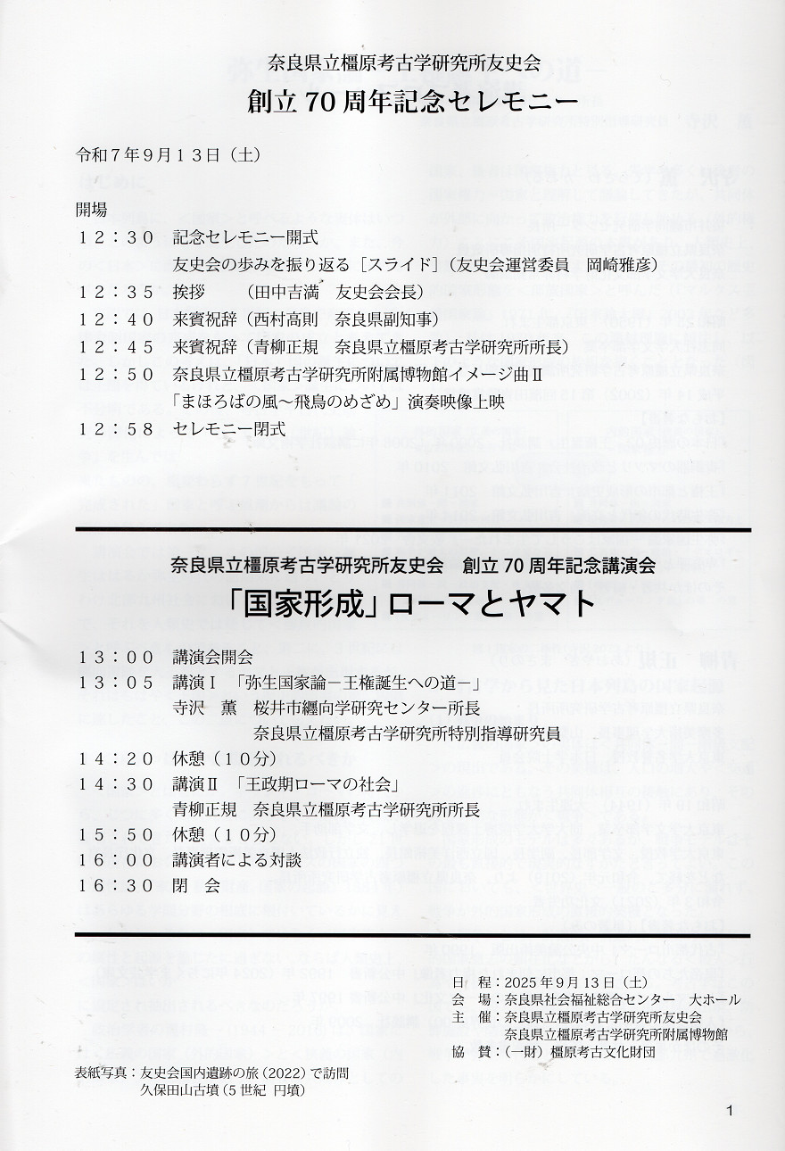 橿原考古学有史会70周年記念講演