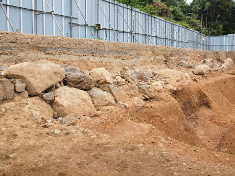 団地の再建時の工事で平成二七年 石垣や堀が検出 金箔瓦が出土しているところから