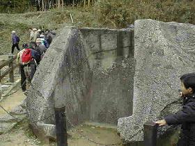 野口王墓古墳から少し西へ歩いたところにある鬼の俎、雪隠は花崗岩を加工した横穴式石槨の底石と蓋石です。