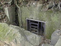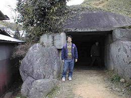 (写真は岩屋山古墳の石室入り口と羨道と石室内部)