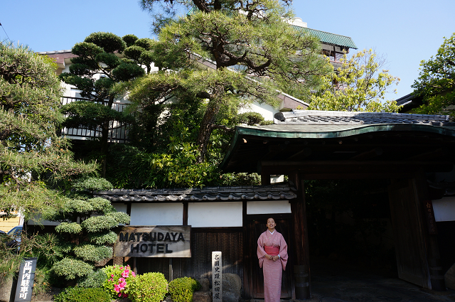 歩くこと15分老舗旅館「松田屋」が見えてくる