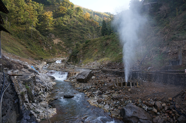 これがこの温泉の名物 湯元から直接2mの高で落ちる湯柱