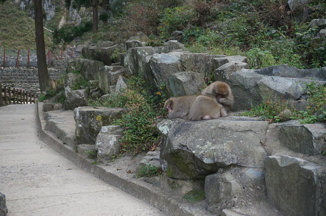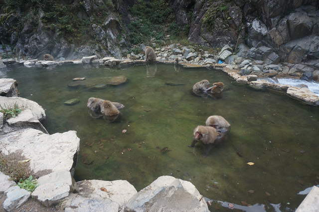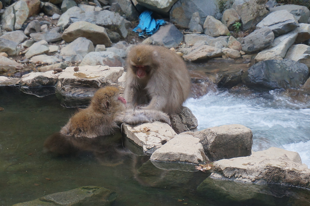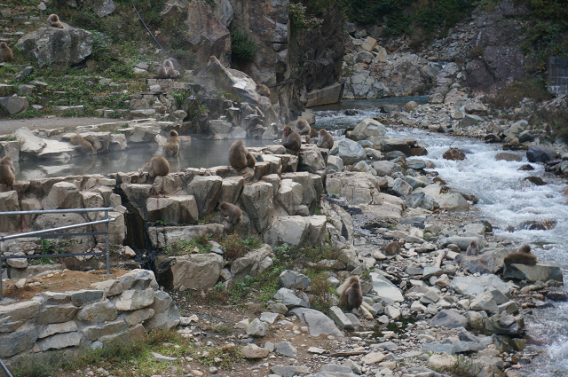 バスは道幅狭いため地獄谷温泉の近くの駐車場には入れない