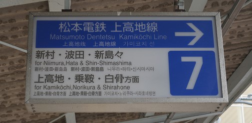 松本駅7番ホームからアルピコ交通電車で30分「新島々(しんしましま)」