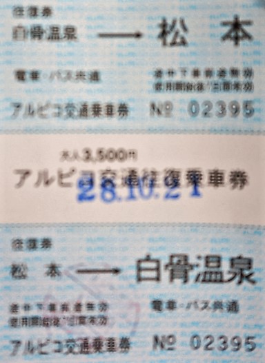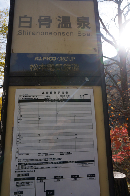 1日2~3本しかないし 「松本~白骨温泉」往復割引乗車券で3500円である