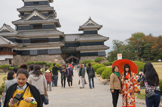 ホテルに荷物を預かってもらい歩いて15分の「松本城」に向かう