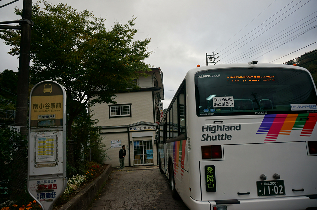 この駅からバスで30分のところに今日の宿「小谷温泉(おたりおんせん)」がある