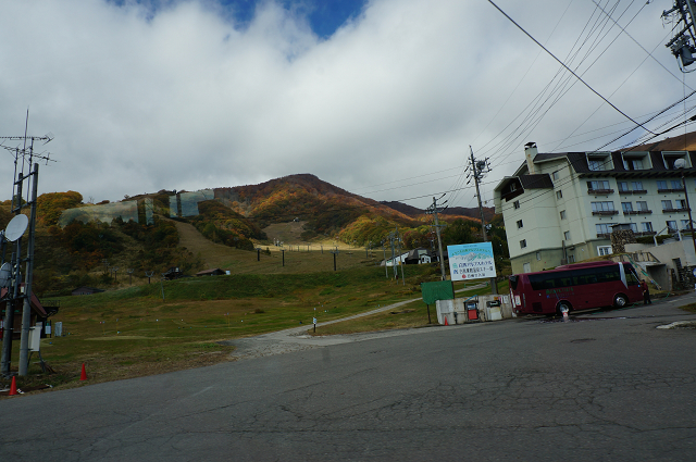 今日は快晴である 宿の前からのバスは「栂池高原」まで行く