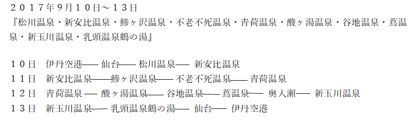 旅行会社のパンフレットに「みちのく憧れの10の秘湯めぐり 4日間」とある