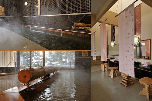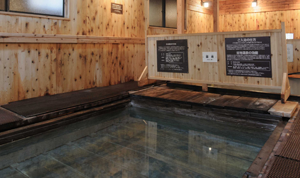 温泉50%・100%の浴槽・ぬる湯・あつ湯・浸頭湯・打たせ湯・蒸気湯・箱むし湯・歩行翼とご自分に合ったお風呂でお楽しみください」とある