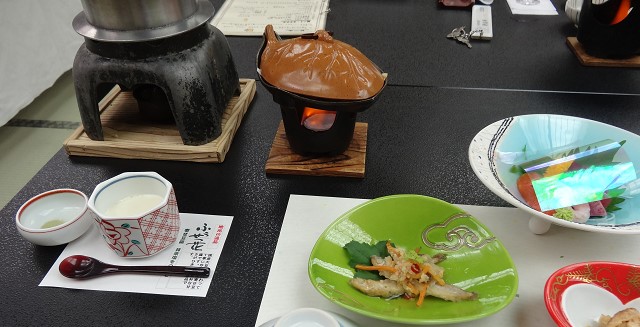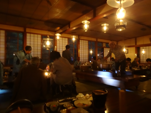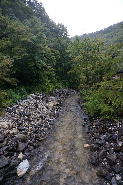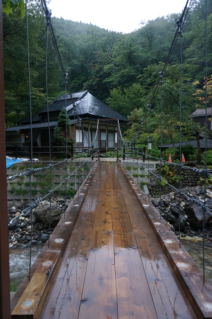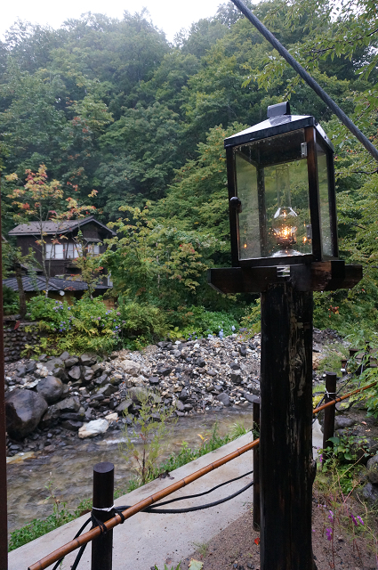 食後 宿の湯で一度体を洗い又服を着て下の露天まで行く